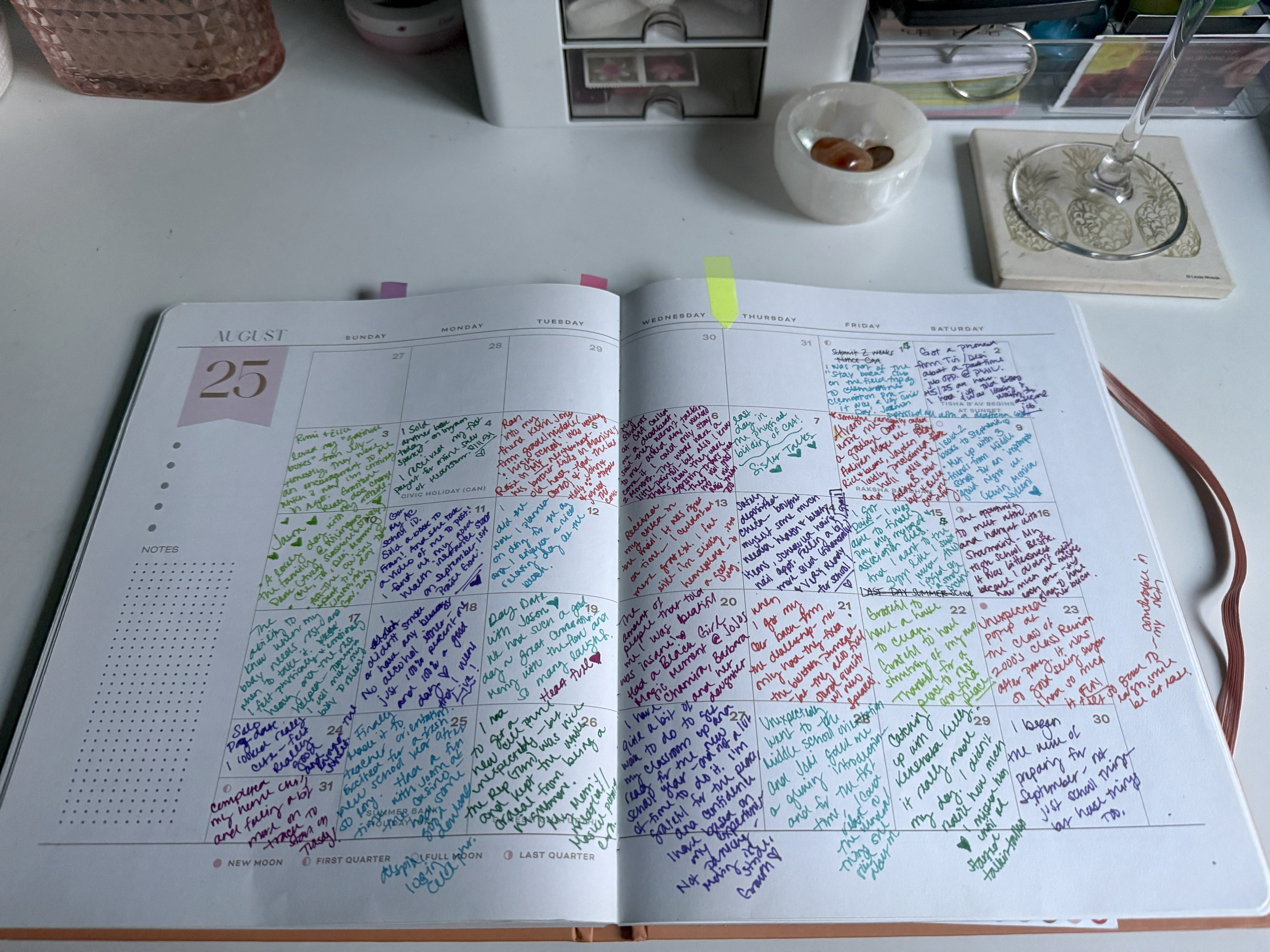 I thought that after my months-long hiatus, I’d return here rested, rejuvenated, and ready to share how keeping a daily gratitude journal for the past two months has helped me focus on the positive while weathering life’s storms. (I even have the picture to prove it—which I’ll still share because the pages are pretty, I’m proud of them, and they were helpful. I’ll likely revisit that topic in a future post.)